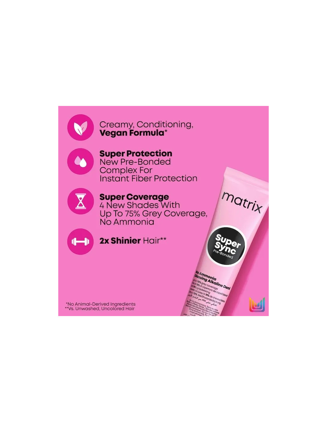 Îți dorești o vopsea de păr care să îți ofere protecție maximă și o acoperire excelentă? Noua vopsea demi-permanentă Matrix Super Sync este soluția perfectă pentru tine! Aceasta este prima vopsea demi cu un complex pre-bonded care oferă protecție instantanee a fibrei capilare și mai mult de 50% acoperire a firelor de păr albe, fără amoniac.